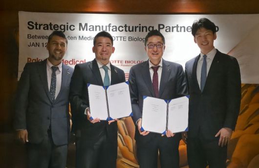 (샌프란시스코=뉴스1) 문대현 기자 = 롯데바이오로직스와 라쿠텐메디칼이 'JP모건 헬스케어 콘퍼런스'(J.P. Morgan Healthcare Conference)가 열리고 있는 미국 샌프란시스코에서 바이오 의약품 위탁생산(CMO) 계약을 체결했다고 14일(한국시간) 밝혔다.