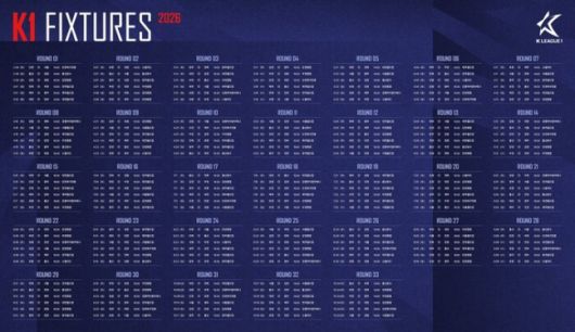한국프로축구연맹은 2026시즌 K리그1 정규리그 1~33라운드 일정을 13일 공식 발표했다.