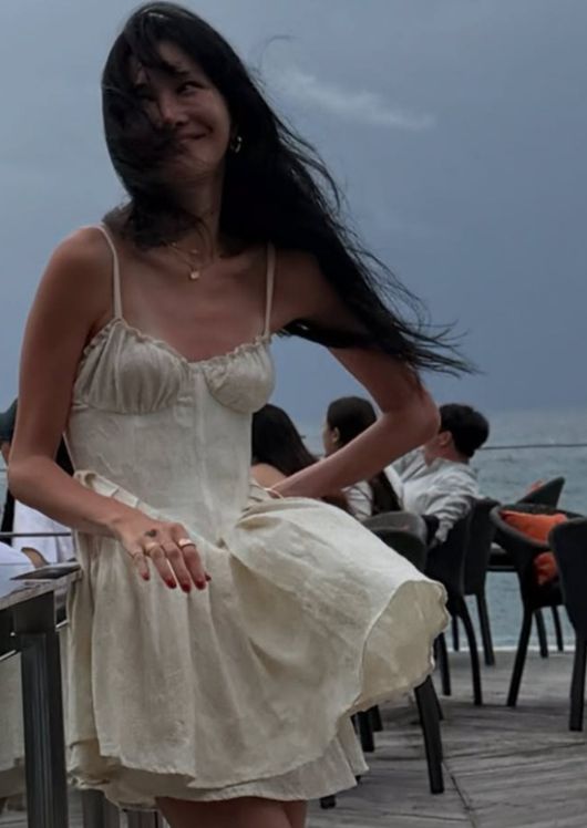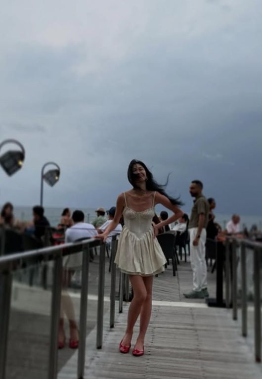 공개된 사진 속에는 발리로 여행을 떠난 윤혜진이 화이트 톤의 미니드레스와 빨간 구두를 신고 폭우 속 여행을 즐기고 있는 모습이 담겨 있다.
