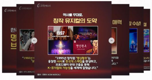‘찰나의 예술’로 불리는 뮤지컬 무대의 감동을 디지털 기록으로 만날 수 있는 이번 콘텐츠는 코리안메모리에서 카드뉴스와 국립중앙도서관 유튜브에서 짧은 영상(숏폼)으로도 감상할 수 있다.
