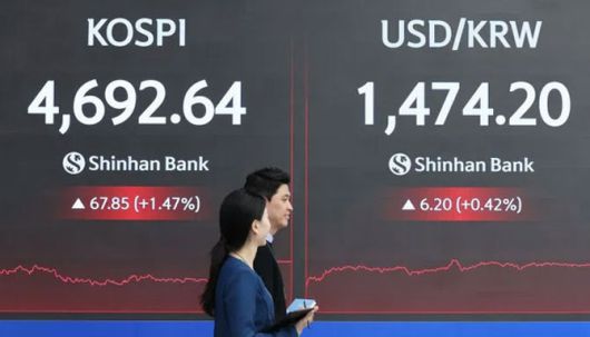 13일 서울 중구 신한은행 본점에 코스피 지수와 원/달러 환율이 표시되고 있다. (사진=연합뉴스) |