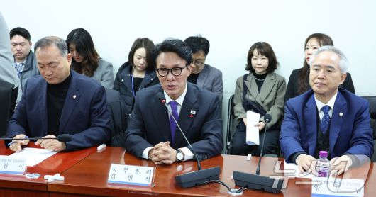 (서울=뉴스1) 신웅수 기자 = 김민석 국무총리가 14일 서울 여의도 국회 의원회관에서 열린 광주·전남 통합추진 특위 간담회에서 발언하고 있다. 2026.1.14/뉴스1