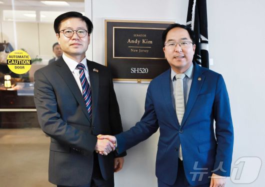 (서울=뉴스1) = 여한구 산업통상부 통상교섭본부장이 13일(현지시간) 미국 워싱턴 D.C. 의회에서 앤디 킴 상원의원과 면담 후 기념촬영을 하고 있다. (산업통상부 제공. 재판매 및 DB 금지) 2026.1.14/뉴스1urodoct2@news1.krCopyright ⓒ 뉴스1. All rights reserved. 무단 전재 및 재배포, AI학습 이용 금지.