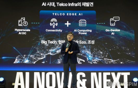 [서울=뉴스핌] 김학선 기자 = 정재헌 신임 SK텔레콤 CEO가 3일 서울 강남구 코엑스에서 열린 'SK AI 서밋'에서 기조연설을 하고 있다. 2025.11.03 yooksa@newspim.com |