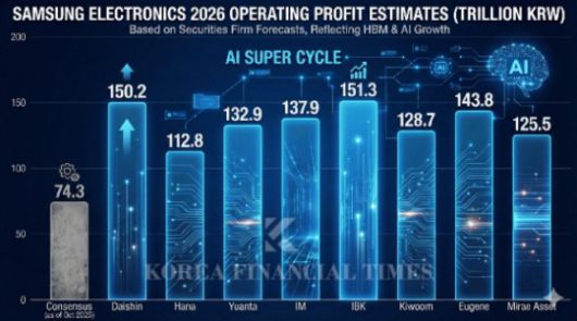 Daishin Securities (KRW 150.2 trillion) and IBK (KRW 151.3 trillion) forecast over KRW 150 trillion. Even Hana Securities, which presented conservative figures, estimated KRW 112.8 trillion. Samsung Electronics' operating profit surpassing KRW 100 trillion this year is virtually considered a fait accompli.