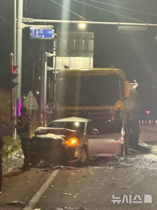 [영덕=뉴시스] 안병철 기자 = 경북 영덕 한 도로에서 25t 화물차가 신호 대기 중이던 승용차를 들이받아 3중 추돌사고가 발생했다.(사진=경북소방본부 제공) 2026.01.14. photo@newsis.com |
