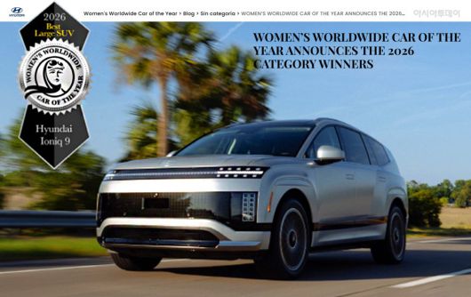 아시아투데이 김아련 기자 = 2026 세계 여성 올해의 차(WWCOTY)에서 현대차의 아이오닉 9이 '최고의 대형 스포츠유틸리티차(SUV)' 부문을 수상했다.