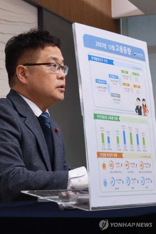 (세종=연합뉴스) 김주성 기자 = 빈현준 국가데이터처 사회통계국장이 14일 정부세종청사 중앙동에서 '2025년 12월 및 연간 고용동향'을 발표하고 있다.