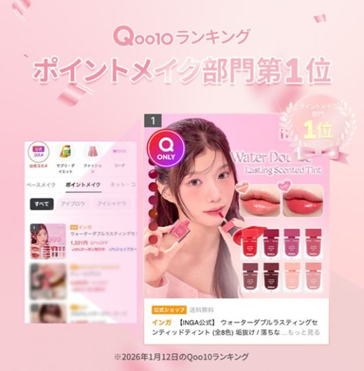 잉가는 그동안 동남아 주요 국가의 온라인 뷰티 플랫폼에서 베스트셀러를 기록하며 색조 화장품 경쟁력을 입증해 왔다. 이러한 흐름은 일본 시장에서도 이어졌다. 일본 대표 뷰티 이커머스 플랫폼인 큐텐(Qoo10)에서 주력 제품인 '워터 글로우 립틴트'를 중심으로 브랜드 인지도를 꾸준히 확대해 온 잉가는, 최근 출시한 신제품을 통해 다시 한번 시장의 주목을 받았다.