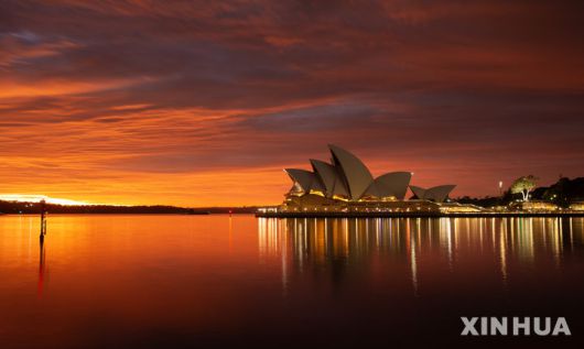 [시드니=신화/뉴시스] 27일(현지 시간) 호주 시드니에 있는 오페라하우스가 아침노을과 함께 모습을 드러내고 있다. 2025.08.27. |
