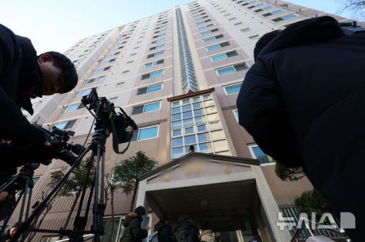 [서울=뉴시스] 권창회 기자 = 서울경찰청 공공범죄수사대가 정치자금법 위반 등 혐의로 김병기 더불어민주당 의원 주거지 등 6개소에 대한 압수수색을 실시하고 있다. 14일 오전 서울 동작구 김병기 의원 자택에서 취재진이 대기하고 있다. 2025.01.14. kch0523@newsis.com