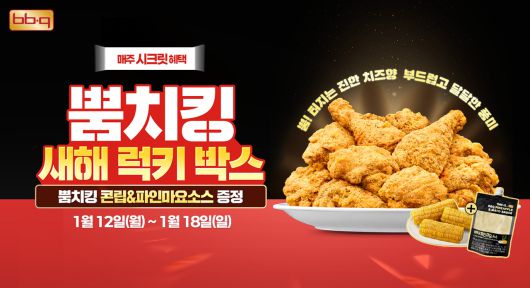 [헤럴드경제=박연수 기자] 제너시스BBQ 그룹이 오는 18일까지 BBQ앱 및 웹사이트를 통해 뿜치킹을 주문한 고객에게 ‘뿜치킹 콘립’과 ‘파인마요소스’를 증정하는 ‘뿜치킹 새해 럭키 박스 2차 캠페인’을 진행한다.