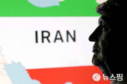 트럼프 대통령 미니어처 뒤로 보이는 이란 국기 이미지 [사진=로이터 뉴스핌] |