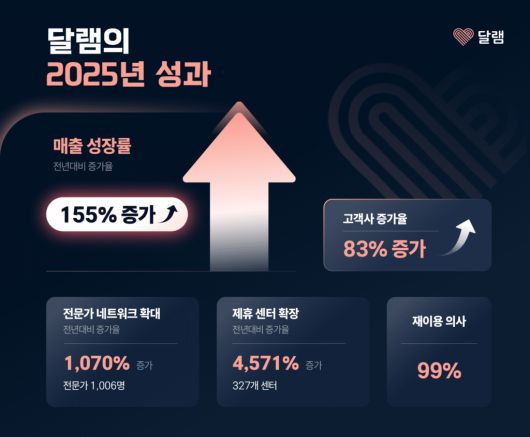 서비스 운영 지표도 크게 확대됐다. 2025년 총 서비스 제공 횟수는 전년 대비 163% 증가한 4,396회를 기록했다. 공급 인프라도 성장해 전문가 1,006명, 327개 센터를 확보했다. 전년 대비 증가율은 각각 1,070%, 4,571%다.