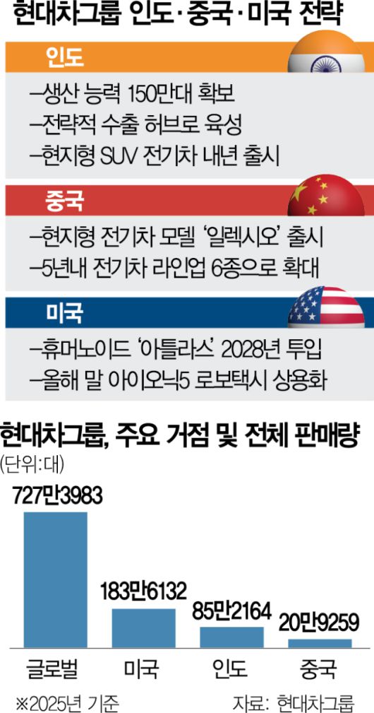 정의선 현대자동차그룹 회장이 새해 벽두부터 미국·중국·인도 3개국을 방문하며 광폭 경영 행보를 보이고 있다. 글로벌 영향력이 큰 주요국에서 모빌리티와 인공지능(AI), 로보틱스, 수소 등 그룹의 주력 및 미래 사업을 점검하고 경쟁력을 강화하기 위한 포석으로 보인다.