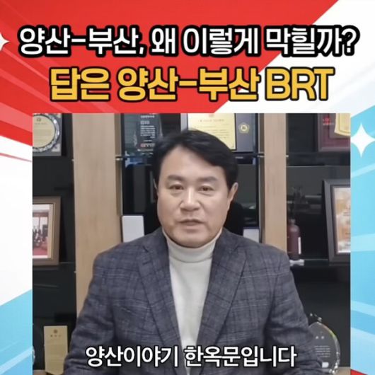 [포인트경제] 한옥문 전 양산시의회 의장(양산미래혁신연구원 원장)이 지난 12일 자신의 유튜브 채널 '양산이야기'를 통해 "양산과 부산은 이미 하나의 생활권으로 기능하고 있지만, 교통 체계는 이를 따라가지 못하고 있다"며 양산-부산 간 BRT 도입을 제안했다.