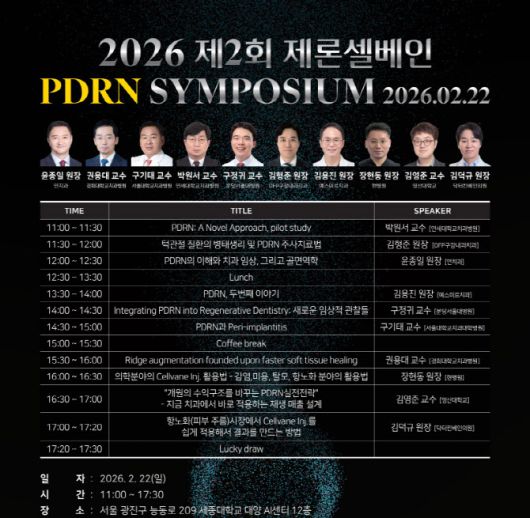 김덕규 제론셀베인 대표는 “PDRN은 치과 및 재생의학 전반에서 임상적 확장 가능성이 매우 큰 소재”라며 “이번 심포지엄은 단순한 이론 소개를 넘어 실제 임상 성과와 적용 노하우를 공유하는 자리로 의료진에게 실질적인 도움이 될 것”이라고 전했다.