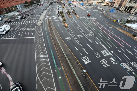(서울=뉴스1) 황기선 기자 = 서울 시내버스 총파업 이틀차인 14일 오전 서울역 버스환승센터 중앙버스전용차로가 한산하다. 2026.1.14/뉴스1