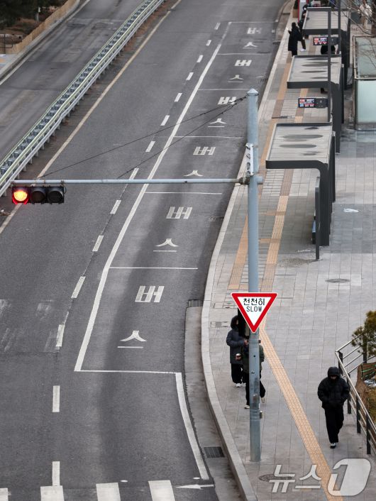 (서울=뉴스1) 황기선 기자 = 서울 시내버스 총파업 이틀차인 14일 오전 서울역 버스환승센터 중앙버스전용차로가 한산하다. 2026.1.14/뉴스1