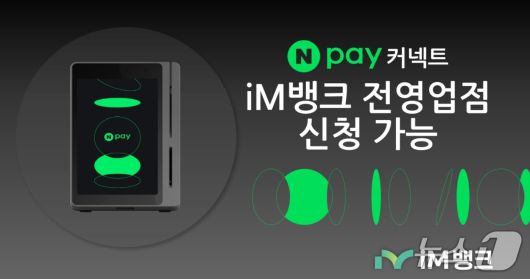 (대구=뉴스1) 김종엽 기자 = iM뱅크는 14일 네이버페이(Npay)와 협업해 전국 영업점에서 가맹점 결제기기인 'Npay 커넥트' 단말기 신청을 받는다고 밝혔다.