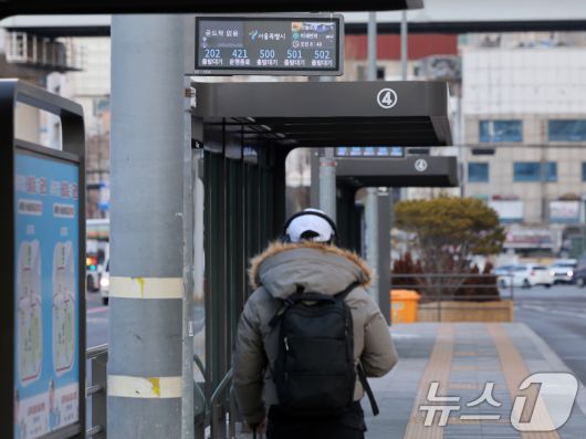 (서울=뉴스1) 황기선 기자 = 서울 시내버스 총파업 이틀차인 14일 오전 서울역 버스환승센터 버스정류장에서 시민이 도착 정보를 확인하고 있다. 2026.1.14/뉴스1
