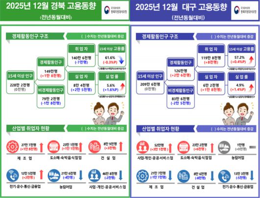 14일 동북지방데이터청에 따르면 지난해 12월 대구와 경북의 실업률은 각각 4.9%, 5.6%로 집계됐다.
