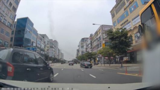 지난 2023년 5월24일 낮 경기 고양시 덕양구 신원지하차도 위 사거리에서 상습 보험사기 혐의를 받는 일가족 일당이 동시 좌회전을 한 뒤 진로를 바꾸는 차량(왼쪽)에 일부러 부딪히려는 모습. 경기북부경찰청 제공 영상 갈무리 |