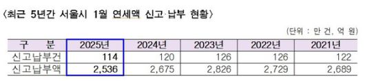 작년 기준 서울시 자동차 등록 대수는 약 320만대로, 이중 연세액 신고를 통해 절세 혜택을 받은 대상은 114만 건(36%)에 달한다.