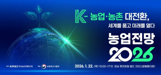 기후위기와 고령화, 농촌소멸 등 복합 위기에 직면한 한국 농업·농촌의 해법을 모색하는 ‘농업전망 2026’ 대회가 이달 22일 막을 올린다. 농업인과 산업계, 학계, 정부·지자체 농정 담당자들이 한자리에 모여 2026년 농정 방향과 산업별 전망을 종합 점검하는 자리로, 농정 전환기의 좌표와 실행 과제가 집중 논의될 전망이다.