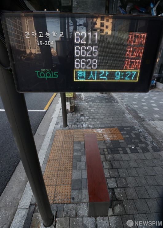 [서울=뉴스핌] 정일구 기자 = 서울 시내버스 파업이 이틀째 이어진 14일 오전 서울 영등포구 양평동 인근 버스정류장 안내판에 버스 위치가 차고지로 나오고 있다. 2026.01.14 mironj19@newspim.com