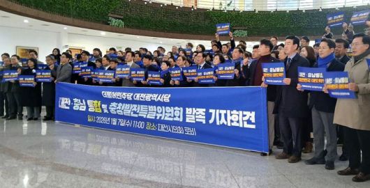 [대전=뉴시스] 조명휘 기자 = 더불어민주당 대전시당이 7일 대전시의회 로비에서 '대전충남 통합 및 충청발전특별위원회' 출범식을 열고 있다. 2025.01.07. photo@newsis.com *재판매 및 DB 금지 |