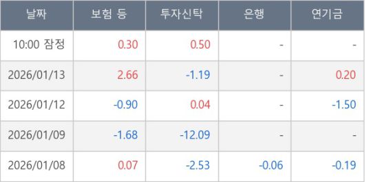 [표] 주요 기관별 순매매량 (단위 만주)