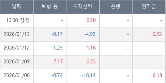 [표] 주요 기관별 순매매량 (단위 만주)