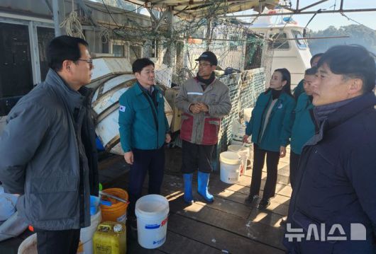 [창원=뉴시스]경남도 이상훈 해양수산국장 등이 통영의 한 해상가두리양식장을 찾아 겨울철 저수온 대응 상황을 점검하고 있다.(사진=경남도 제공) 2026.01.14. photo@newsis.com |