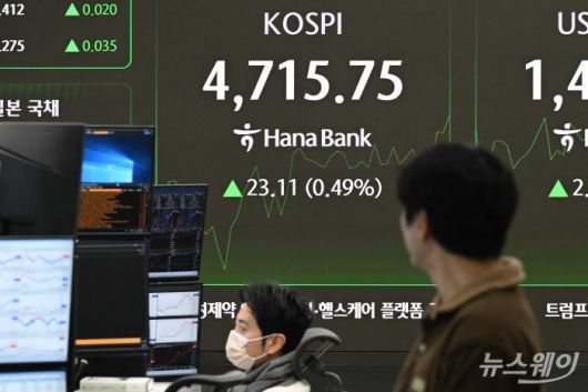 코스피 지수가 장중 상승 흐름을 이어가며 4710선에서 거래되고 있다. 연초 랠리 이후 숨 고르기 국면 속에서도 기관 매수세가 유입되며 지수 하단을 지지하는 모습이다.