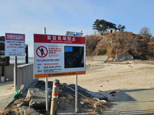 출입통제구역 공고판 설치. 보령해경 제공 |