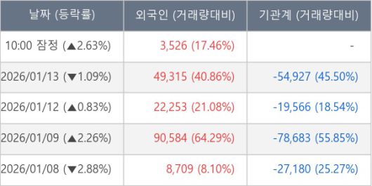 [표] 외국인ㆍ기관 순매매량 (단위 주)