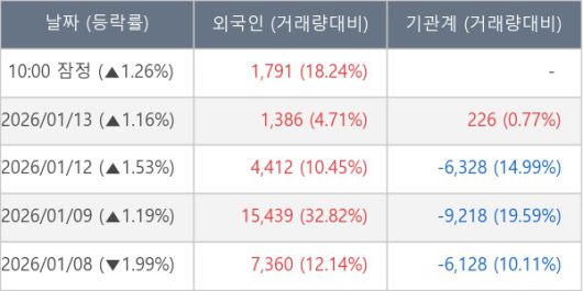 [표] 외국인ㆍ기관 순매매량 (단위 주)