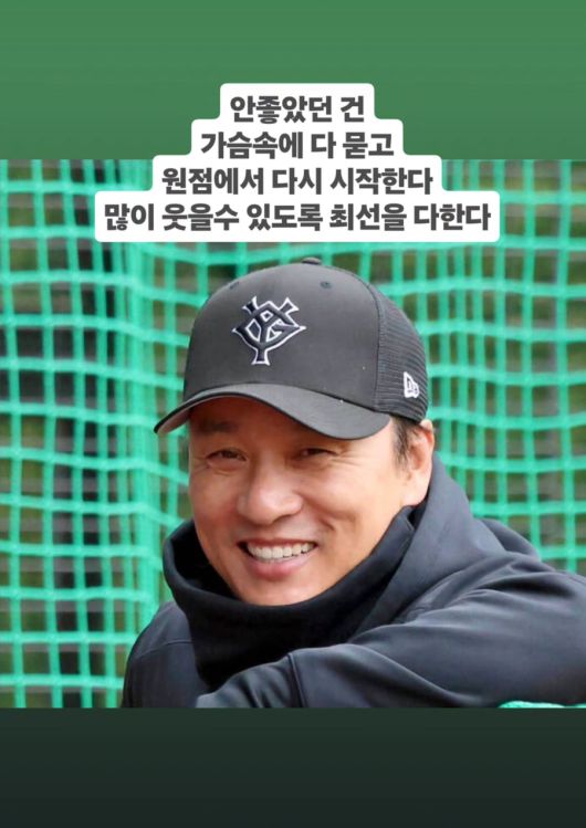 이승엽 전 감독은 지난 13일 개인 소셜네트워크서비스(SNS) 계정에 요미우리 모자를 쓰고 밝게 웃고 있는 사진 한 장을 게시했다. 더불어 "안 좋았던 건 가슴 속에 다 묻고 원점에서 다시 시작한다. 많이 웃을 수 있도록 최선을 다한다"는 말을 남겼다. 새출발과 함께 각오를 다지는 모습이었다.
