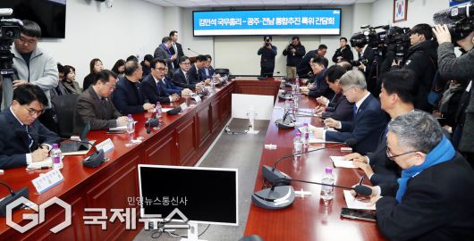 (서울=국제뉴스) 김민석 국무총리 14일 오전 서울 여의도 국회 의원회관에서 열린 국무총리-더불어민주당 광주·전남 통합추진 특위 간담회에서 모두발언하고 있다./사진=이용우 기자