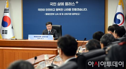 아시아투데이 박성일 기자 = 윤호중 행정안전부 장관이 13일 오전 서울 종로구 정부서울청사에서 열린 산하기관 (상호부조, 재정세제분야) 업무보고에 참석해 모두발언을 하고 있다.