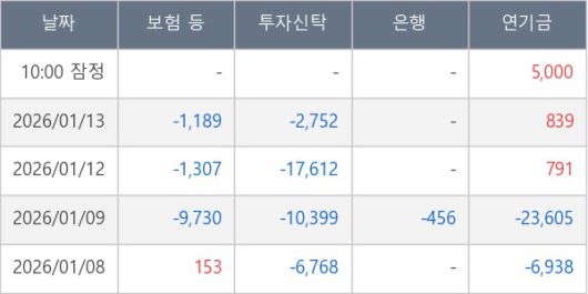 ※ 장중 매매동향은 잠정치이므로 실제 매매동향과 차이가 발생할수 있음