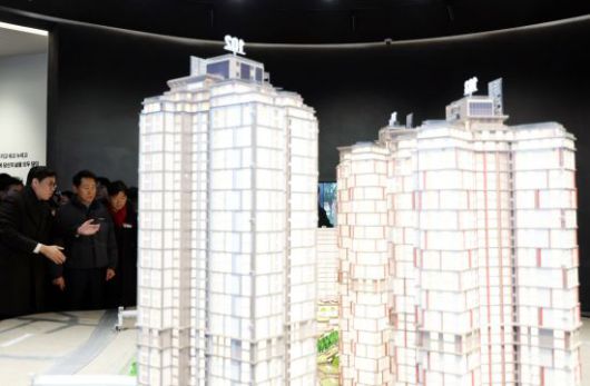 지난 12일 오세훈 서울시장(가운데)이 서울 노원구 월계동의 '서울원 아이파크' 모델하우스를 살펴보며 관계자의 설명을 듣고있다. 연합뉴스. |