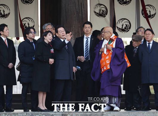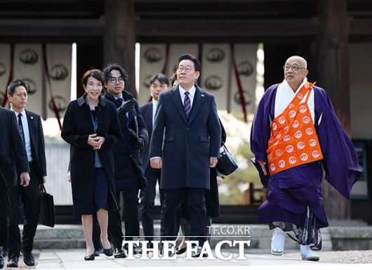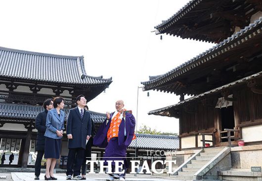 [더팩트ㅣ서예원 기자] 이재명 대통령이 14일(현지시간) 다카이치 사나에 일본 총리과 함께 나라현의 대표 문화유적지인 호류지를 둘러보고 있다.