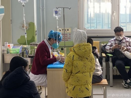 5일 방문한 중국 베이징 시내 한 종합병원. 소아과 병동에서 간호사가 어린이 환자에게 수액주사를 놓고 있다. /사진=우경희 |