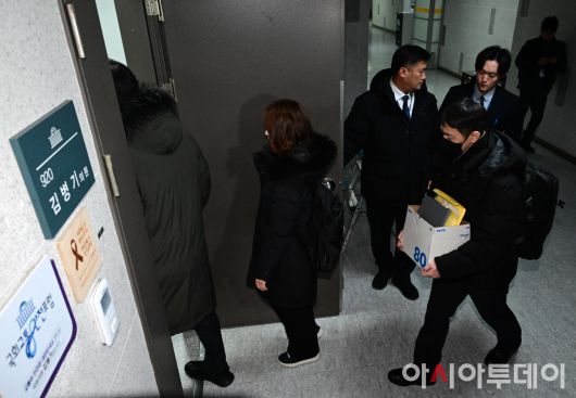 아시아투데이 이병화 기자 = 경찰이 공천헌금 수수 등 각종 비위 의혹에 휩싸인 김병기 더불어민주당 의원의 주거지 등에 대한 압수수색에 착수한 14일 국회 의원회관 내 김 의원 사무실을 압수수색하기 위해 경찰이 들어가고 있다. ⓒ "젊은 파워, 모바일 넘버원 아시아투데이"