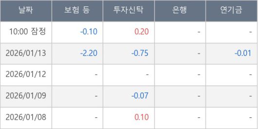 [표] 주요 기관별 순매매량 (단위 만주)