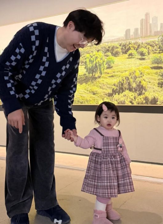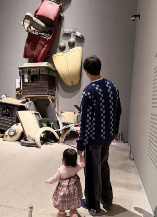 사진 속 박수홍은 딸 재이의 손을 꼭 붙잡고 미술관을 찾은 모습이다.