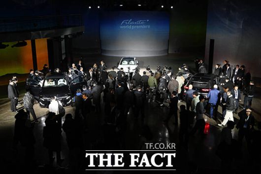 르노코리아 글로벌 플래그십 미디어 공개 행사가 지난 13일 오전 서울 광진구 그랜드 워커힐에서 열린 가운데 르노 필랑트 차량이 공개되고 있다. /서예원 기자 |