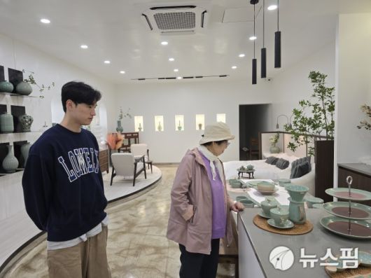 서울에서 가족들과 함께 강진 반값여행을 온 방문객들이 고려청자 판매장을 둘러보고 있다. [사진=조은정 기자] |